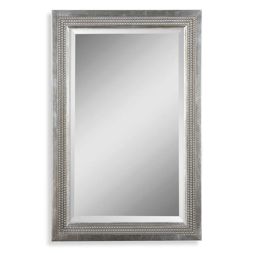 UttermostFrame features a silver leaf finish with light gray glaze. Mirror is beveled and may be hung horizontal or vertical.Specifications Featured-0 Dime...