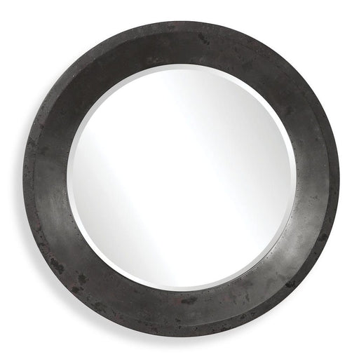 UttermostShowcasing an industrial style, this round mirror is paired with an oxidized metal frame in dark gray, silver, charcoal, and rust tones with nail a...