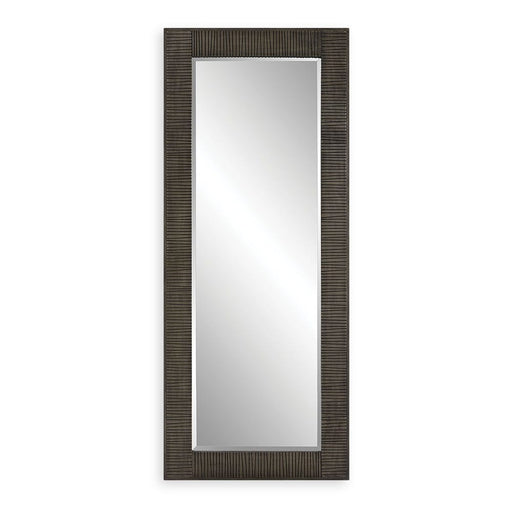 UttermostThis oversized mirror shows off simple lines and a beautiful textured silver finish. Can be displayed leaning against a wall or hung horizontal or ...