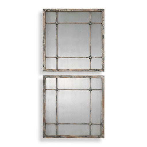 UttermostRustic with a twist, this square mirror is constructed from solid wood in a heavily distressed finish with aged whitewash. Iron details are finishe...