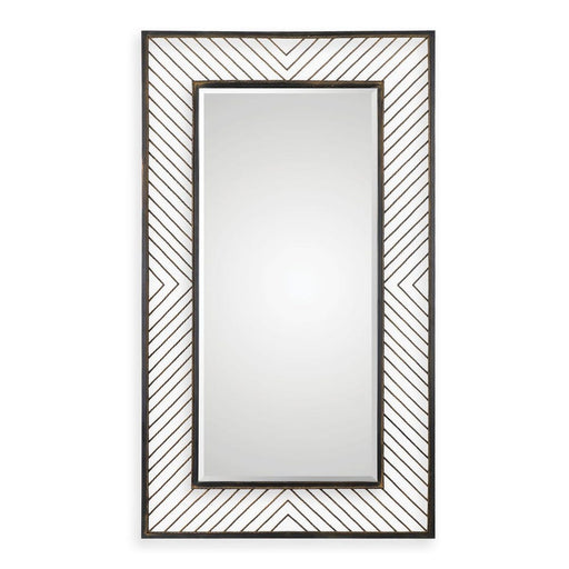 UttermostThis stately mirror features an antiqued style mirror and would make a great addition to any room. The narrow but sturdy metal frame has an aged bl...