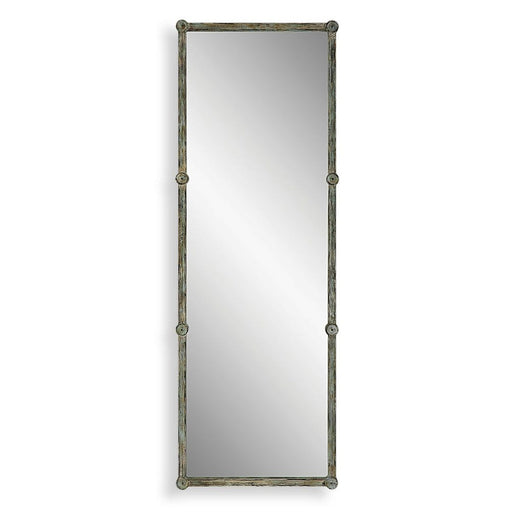 UttermostThis mirror showcases a traditional design with channeled frame and medallion accents featuring a patinaed finish of weathered verdigris green with...