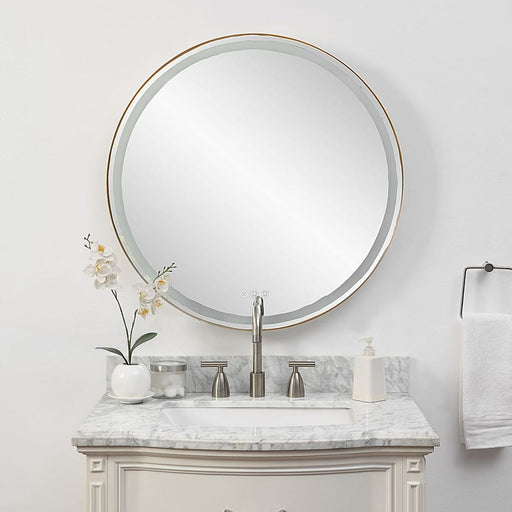 UttermostVersatile in design, this round mirror has integrated LED lighting that illuminates through the frosted strip in the polished edged mirror. The pla...