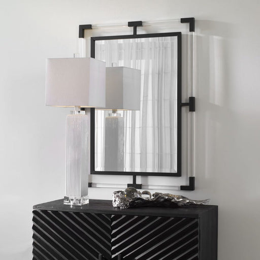 UttermostThis mirror can certainly serve as a focal point for any room. Combining forged iron finished in matte black, with suspended, clear acrylic, solid ...