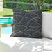 A multi-tonal onyx ground contrasts with sandy abstract loops in Sunbrella solution dyed acrylic. Complete with an invisible zipper and filled with a plush, microdenier polyester inside a water-resistant casing. Made in the USA.