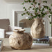 This set of two terracotta vases features a beautifully textured aged brown finish, reminiscent of ancient artifacts unearthed from time. Each vase boasts unique imperfections and earthy tones that evoke a sense of history and authenticity. Perfect for adding a rustic charm to your decor, these vases can be displayed together or separately, making them versatile accents for any space. Safe for outdoor use, but protection from freezing temperatures is recommended. Sizes: S-12x10x12, L-8x12x8