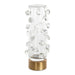 Enhance your home decor with our clear glass vase, adorned with organic glass spheres accenting the outer surface, set atop a brushed brass finished base. This stunning piece combines modern sophistication with artistic flair, making it the perfect addition to any room.