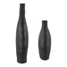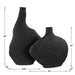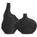 Crafted with care form high-quality ceramic, these vases showcase a matte black finish that exudes simplicity. The organically shaped silhouettes and stacked ring design creates a visual appeal, making them a conversation piece that will draw admiration from guests. Sizes: S-14x12x4, L-11x18x4