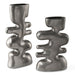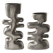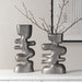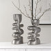 Set of two ceramic vases embrace the iconic look of modern décor. These decorative vases feature a free flowing, carefree design finished in a tarnished nickel glaze. Suitable for placement in most any room, these can simply be displayed alone or add some florals for a touch more. Sizes- S- 8x12x4, L- 7x14x4