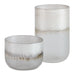 The Frost Vases complement virtually any style. Handcrafted from etched glass, each vase is finished with a metallic silver drip design and can easily hold floral stems, candles, fruit, or stand alone. Sizes: S-6x4x6, L-6x9x6