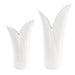 This set of two beautifully crafted white ceramic vases captures the delicate beauty of nature. Inspired by long elegant leaves found in nature. The smooth finish and delicately rippled edges highlight their refined design, making them perfect for showcasing your favorite flowers or as standalone art pieces. Sizes: S-4x11x7, L-6x15x8