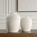 Elevate your decor with these elegantly textured ceramic vases, featuring a refined chalk white finish and intricate ridged detailing. Their artisanal design bring a sophisticated, modern touch to any space. Perfect for displaying florals or standing alone as a statement piece. Sizes: S-9x11x9, L-12x14x12