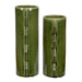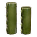 This dynamic set of two green ceramic vases showcases a distinctive zig-zag edge design that adds a modern touch to your decor. The rich green finish creates a bold statement, making them perfect for displaying fresh flowers or as stunning decorative accents. With their unique shape and vibrant color, these vases effortlessly elevate any space, whether on a dining table, shelf, or mantel. Safe for outdoor use, but protection from freezing temperatures is recommended. Sizes: S-6x12x5, L-6x14x5