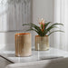 Handcrafted from glass, these vases showcase an iridescent bubbled outer finish in light beige with a punch of vibrant orange inside. Sizes: S-6x6x6, L-6x8x6