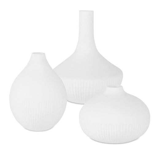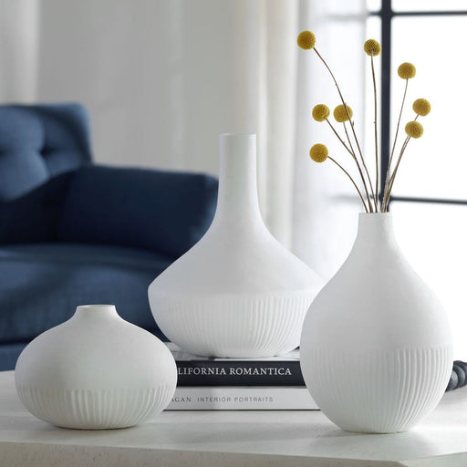 UttermostThis striking set of three white ceramic vases features unique shapes that create a bold and contemporary statement in any space. Each vase showcas...