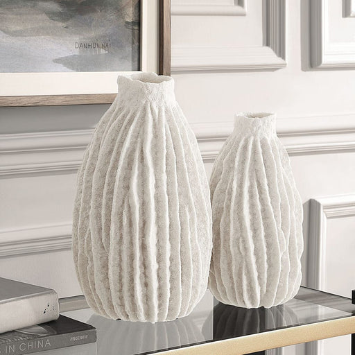 UttermostThis set of two vases features a stunning textured ivory finish that adds depth and sophistication to any decor. Each vase showcases unique ridges ...