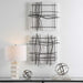 This set of abstract iron wall panels creates a striking black and white installation. May be hung five ways for a truly unique display.