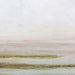 Hazy Lake's low horizon line divides the canvas into a vast, pale sky of creamy whites and grays, creating an atmospheric contrast with the subtle hints of muted greens and browns on the textured ground. The artwork is surrounded by a simple, yet classic gallery frame in a gold finish. Each canvas is proudly handcrafted and printed in the USA. Artwork by Haley Knighten.
