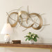 Interwoven, abstract forms create a captivating design in this contemporary wall decor, crafted from iron with complementary antique gold and warm silver finishes.