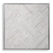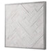 This wood wall panel personifies modern coastal style with whitewashed pine wood in a classic herringbone pattern accented by sleek silver bar inserts. Each piece is paired with a distressed brushed silver frame and may be hung horizontal or vertical.