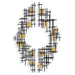 Set of two contemporary wall pieces display overlapping iron grids finished in matte black with gold leaf accents. May be hung horizontal or vertical.