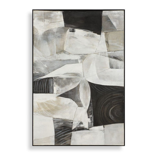 UttermostThis hand painted canvas showcases large geometric shapes, layered and overlapping one other. Different shades of gray are complemented by pops of ...