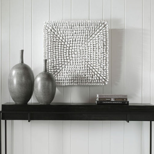UttermostThis set of abstract iron wall panels creates a striking black and white installation. May be hung five ways for a truly unique display.Specificati...
