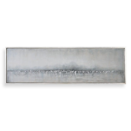 UttermostHazy Lake's low horizon line divides the canvas into a vast, pale sky of creamy whites and grays, creating an atmospheric contrast with the subtle ...