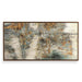 This refined, transitional abstract on canvas showcases expressive brushstrokes with rich fluidity and texture. Soft green, gray, gold, taupe, off-white, and black shades make up this cool-toned piece. Cream-colored areas on each piece feature a sand textured finish. An antiqued copper bronze gallery frame completes the artwork. Due to the handcrafted nature of this artwork, each piece may have subtle differences. This piece may be hung horizontal or vertical.