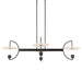 4 LED lights softly bounce onto white alabaster disks enhance with a matte black finish. Supplied with 20' wire, 6-12" stems and 2-6" stem for adjustable installation. No bulb required with built-in LED light source; 4-6 watt, 3000K, CRI of 90, 2774 Lumens, 50,000 estimated hours of illumination.