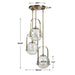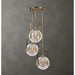 Soft contemporary lines anchor these oversized floating spheres of clear watered glass all enhanced with rich antique brass accents giving a nod to modern design lines. 3-40 watt max Edison sockets. Bulbs not included. Supplied with 15' wire, 9-12" stems and 3-6" stems for adjustable installation in a cascade pattern as shown.