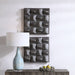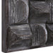 A contemporary take on rustic decor, this wood wall panel features 3-dimensional scooped fir wood blocks with a distressed, aged gray wash and silver highlights.