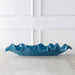 This ceramic bowl models organic curved edges that create a feminine look and is finished in a striking gloss blue glaze. May also be hung on the wall.