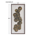 Perfect for an office or library, this wall art incorporates a layered medallion design made from recycled newspaper with an aged feel. The artwork is displayed over a light oatmeal linen backing in a dark walnut finished shadow box frame under glass. May be hung horizontal or vertical.