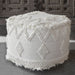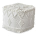 Handwoven from a blend of wool and cotton in soft ivory, accented with raised bohemian inspired patterns and fringed edges.