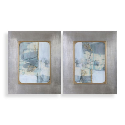 UttermostWhimsical abstract prints showcase light powder blue, deep charcoal, and bright gold hues. Each print is complemented by a large silver leaf profil...