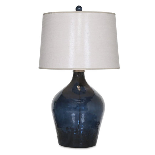 UttermostLightly hammered, midnight blue glass accented with polished nickel plated details. The round, tapered, hardback shade is a beige linen fabric with...