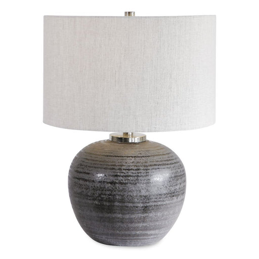 UttermostFinished in a charcoal glaze with etched texture, this table lamp adds a casual yet contemporary feel to a space. The round ceramic base is complem...