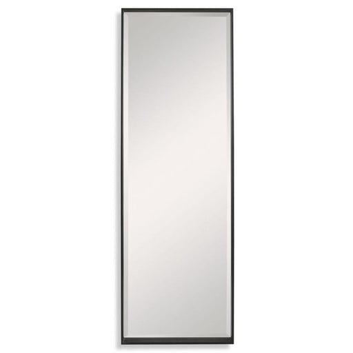 UttermostThis oversized mirror showcases simple, clean lines with a thick iron frame finished in a matte black. The piece has a generous 1 1/4" bevel and ma...