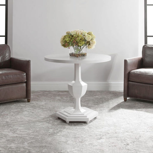 UttermostShowcasing a geometric shaped base, this traditionally inspired foyer table is finished in gloss white giving it an updated modern feel.Specificati...