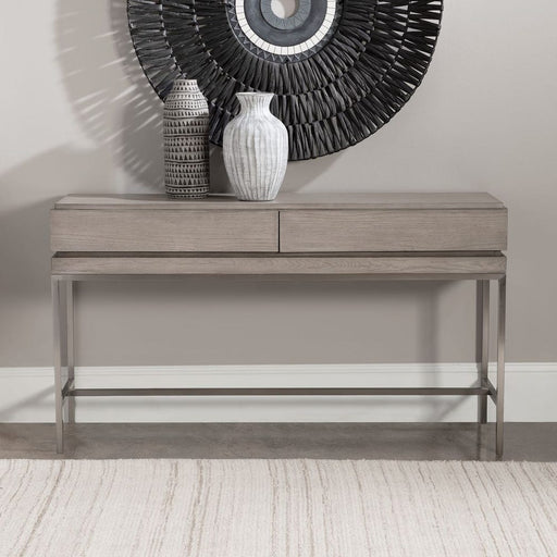 UttermostWith modern simplicity, this console table is layered in an oak veneer and finished in a light mushroom gray stain featuring two hidden storage dra...