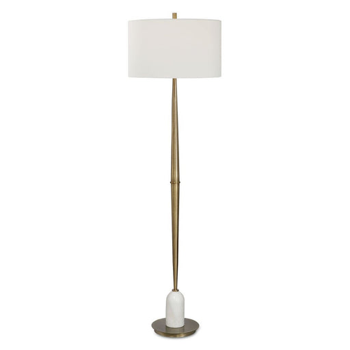 UttermostTransitional in design, this floor lamp has a tapered base finished in a plated antique brass, accented with a polished white marble detail. The pi...