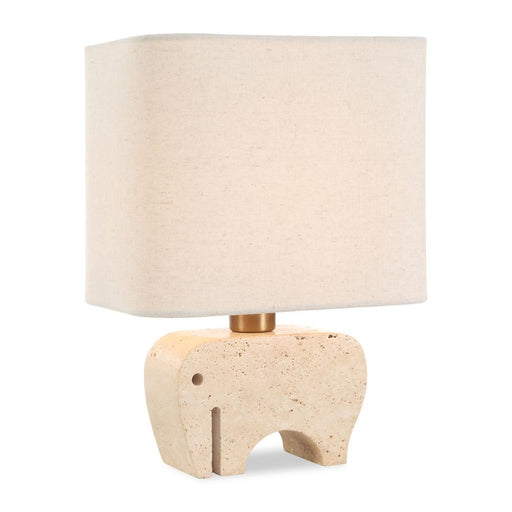 UttermostThe petite Tusk Accent Lamp features a whimsical elephant sculpture carved out of beige travertine, accented with brass plated details. The rectang...