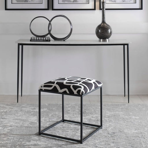 UttermostSophisticated with a touch of whimsy, this accent stool features a cushioned seat upholstered in a contemporary black and white embroidered fabric,...