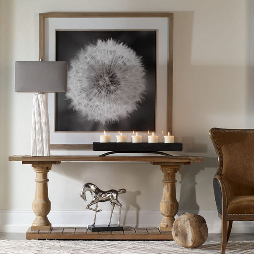 UttermostSolidly constructed of salvaged fir lumber with a carved trestle base. Sun faded and distressed patina is finished with a stony gray wash. Solid wo...