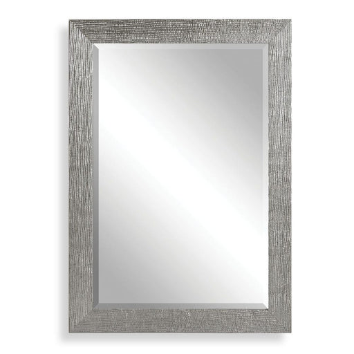 UttermostFrame has a textured, silver finish with a light gray glaze. Mirror is beveled and may be hung horizontal or vertical.Specifications Featured-0 Di...