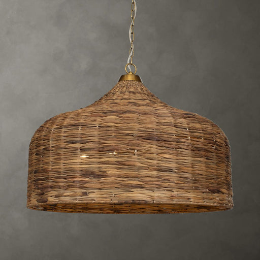 UttermostRich natural woven sea grass is the focal point for this rustic oversized pendant with Antique Brass accents. 5-40 watt max Candelabra sockets. Bul...