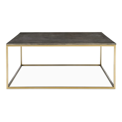 UttermostInspired by modern styling, this coffee table features a beveled faux shagreen wrapped top in charcoal gray paired with a sleek stainless steel bas...