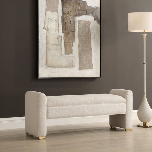 UttermostLush and inviting, the Caliste bench displays an elegant and well tailored look upholstered in a textured boucle polyester in ivory. Finished with ...