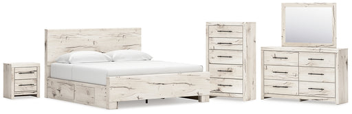 Lawroy King Panel Bed with Mirrored Dresser, Chest and Nightstand